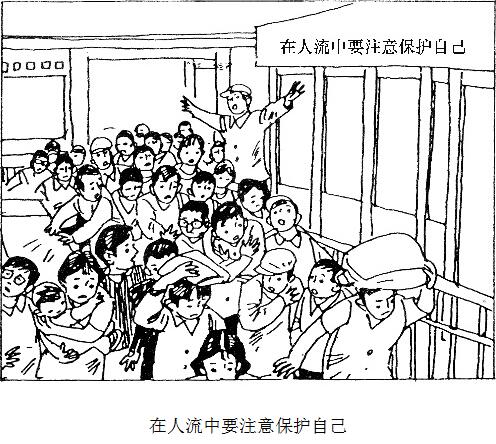 ——如不得已被擠入人流,要防止摔倒;把雙手交叉在胸前保護(hù)自己,用肩和背承受外部壓力;隨人流而動,避免被擠到墻壁或柵欄處;