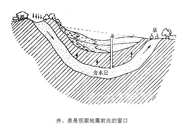 地震前地下巖層受力變形時(shí),埋藏在含水巖層里的地下水的狀況,也會(huì)跟著改變。有時(shí),含水層像飽含水的海綿一樣,在受力時(shí)把水?dāng)D出來(lái);有時(shí),隔水層破裂,使原來(lái)分層流動(dòng)的水摻和在一起;等等。這些變化都有可能通過(guò)井水、泉水等反映出來(lái);這時(shí),井或泉就成為人們觀察地震前兆的“窗口”。