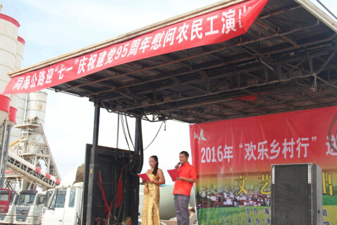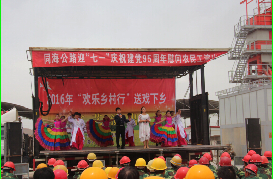 在中國(guó)共產(chǎn)黨成立95周年之際,由寧夏路橋公路工程公司同海路A1合同段主辦的“迎‘七一’慶祝建黨95周年慰問(wèn)農(nóng)民工演出”圓滿結(jié)束。