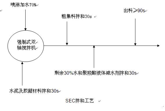高性能混凝土是采用混凝土正交設計來優(yōu)化混凝土配合比。采用磁化水、優(yōu)質的礦物摻合料(粉煤灰、石灰?guī)r粉)、高性能聚羧酸液體減水劑復合,降低水泥用量,并以級配良好的粗、細集料拌和。高性能混凝土的生產過程中粗細集料必須采用單獨計量,而不是累計計量。混凝土拌和工藝宜采用SEC法,也稱為二次投料法;诟咝阅芑炷恋墓に囈螅九c福建南方路面機械有限公司蘭州辦事處簽訂改造協(xié)議,對公司現(xiàn)有混凝土拌和站進行新工藝技術改造。首先,將所有材料無論骨料、粉料、水劑全部由累加計量改為單獨計量。其次,在混凝土拌和站上多增加2個粉料稱和2根水泥螺旋,實現(xiàn)對粉煤灰、石灰?guī)r粉的添加并單獨計量。最后,通過對操作系統(tǒng)軟件的升級,增加二次投料功能。經過改造后的混凝土拌和站能夠滿足高性能混凝土的生產工藝要求。