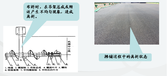 攤鋪機(jī)在攤鋪路面時(shí),混合料離析的原因是螺旋布料器在輸送料的過(guò)程中,由于吊架影響,導(dǎo)致混合料的輸送不順暢、產(chǎn)生阻礙,從而造成攤鋪出的混合料產(chǎn)生縱向離析現(xiàn)象。