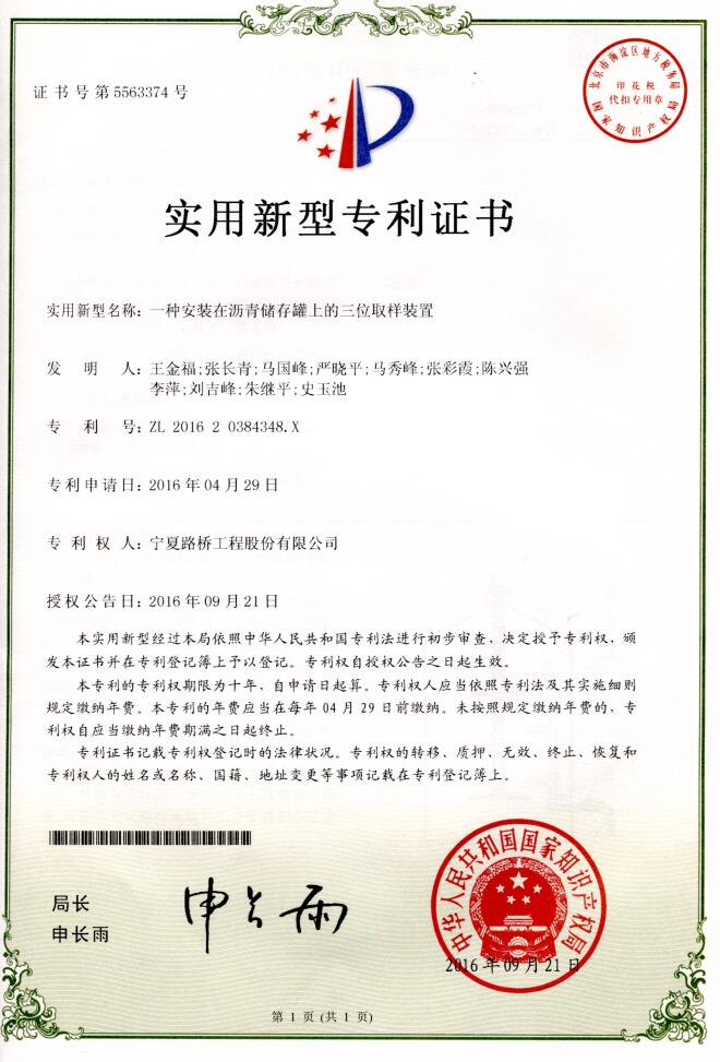 實(shí)用新型名稱:一種安裝在瀝青儲(chǔ)存罐上的三位取樣裝置