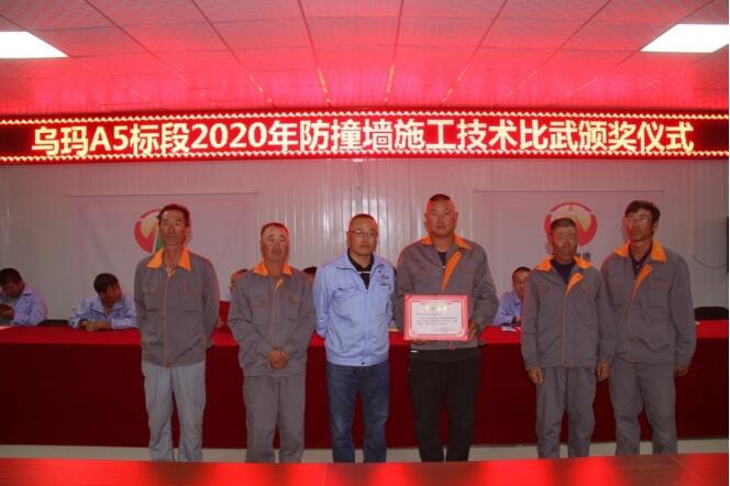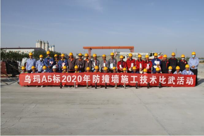 為積極響應(yīng)寧夏交投工程建設(shè)管理有限公司“合心、合力、合拍,大干一百八十天”勞動競賽活動的號召,在項目掀起比武練兵熱潮,5月17日至18日,烏瑪A5標(biāo)段項目經(jīng)理部舉行了防撞墻施工技術(shù)比武大賽。