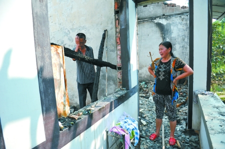 鄧良珍老人與外孫李安云住的房間已被燒成了灰燼